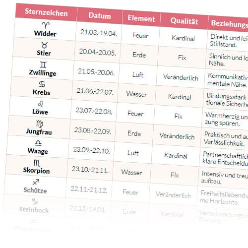 Sternzeichen-Tabelle als PDF-Datei